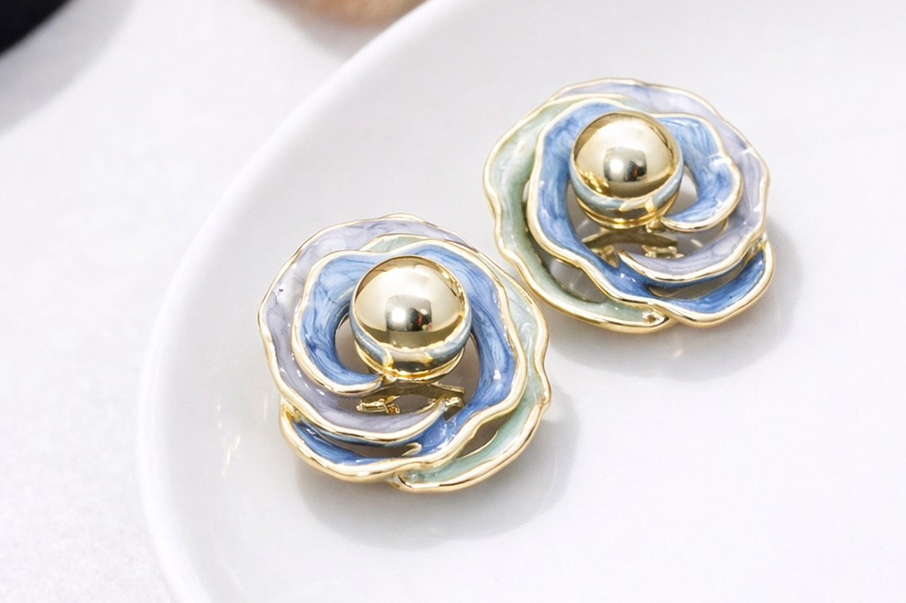 Delicately sculpted and exquisitely detailed, the Rosé Éclat Stud Earrings capture the timeless beauty of a rose in full bloom. Layered enamel petals in soft pastel hues intertwine with polished gold accents, creating a harmonious balance of romance and refinement.