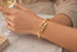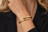 Its sleek open-cuff design offers effortless wear while maintaining a polished, secure feel. Lightweight and smooth against the skin, the bracelet delivers all-day comfort without compromising on elegance. The high-shine finish reflects light beautifully, adding a refined glow that elevates both everyday looks and special occasions.